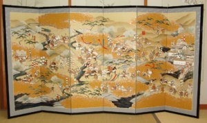 Welcome to our Japanese painting Screen / Japanese folding Screen for sale!!! Traditional Japanese themes, such as Flowers & Birds, Landscapes or Tales of Genji are painted on gold leaf plated paper or gold dyed silk Byobu. We will bring you masterpieces of Japanese original painting screens from our award-winning Master-hand of Shinshu, Japan. All works are new and original, and signed by the prestigious, traditional Japanese artists who are listed in the “Bijutsu-nenkan", Japanese Fine Arts Annual. Please scroll down and click on the image you wish to view for each Japanese Byobu. Japanese Byobu Screens are absolutely gorgeous! for decorating a large wall in your living room, dinning room, office, store, restaurant, hotel, culture centre, foyer, reception hall, or including in the collection in the fine art museum.